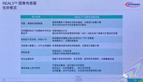 在竞争优势方面,除了提供可靠、准确的深度数据,REAL3图像传感器还无惧环境光干扰,通过获得专利的背景照明抑制(SBI)功能在每个像素中扩展动态范围;并且传感器直接提供原始深度数据,无需进行密集计算,所以CPU占用量低。与结构光技术相比,ToF技术的校准简单,无需进行机械调准和角度校正;同时得益于单目系统架构(无机械基线),发生跌落、振动或热弯曲时,无需重新校准,保证终生坚固耐用。