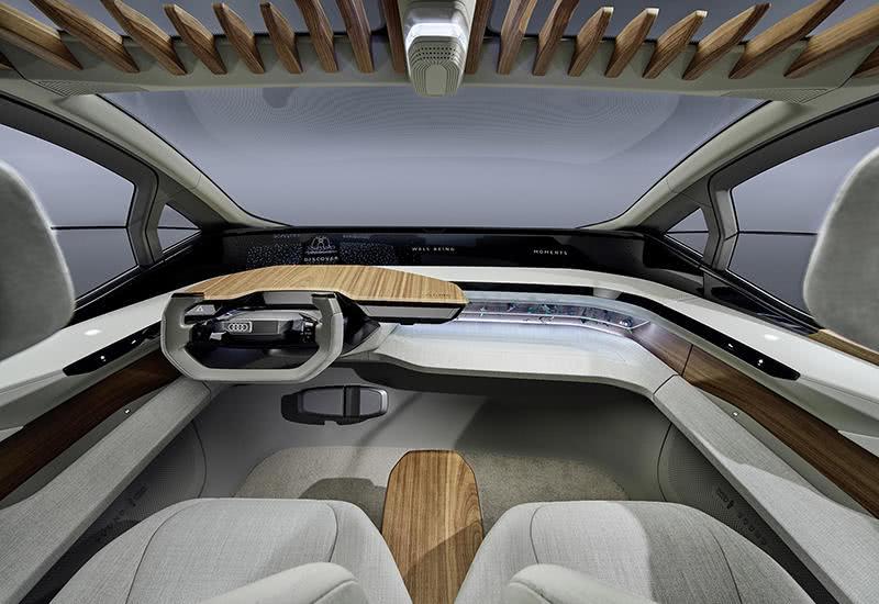 此外,AI:ME还有些别出心裁的小设计,主副驾之间有一张大茶几,从前排中部延伸至后排前中部,茶几带有磁性,奥迪定制的磁吸式杯具可以在上面稳稳立住,不会因行驶颠簸而倾倒。