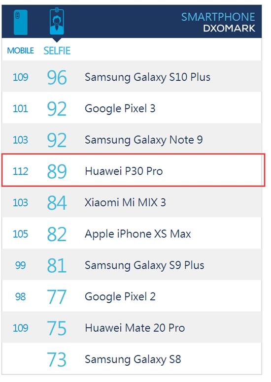 在DxOMark排行榜上,华为P30 Pro前置相机排名位列第四名,这是迄今为止前置相机表现最优秀的国产手机。