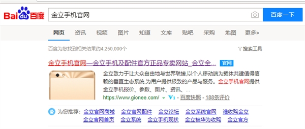 之前有网友发现百度搜索“金立手机”四个字,在搜索结果金立手机官网词条下会有提醒:“该页面因站点更换网址或服务不稳定等原因可能无法正常访问!”