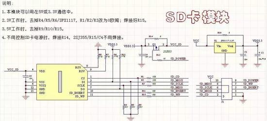 本电路与SD卡的封装有关,注意与封装对应。此电路可以通过端口控制SD卡的电源,比较完善,可以用于5V和3.3V。但是要注意,有些器件的使用,5V和3.3是不一样的。