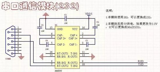 3线连接方式,对应的是母头,工作电压5V,可以使用MAX202或MAX232。