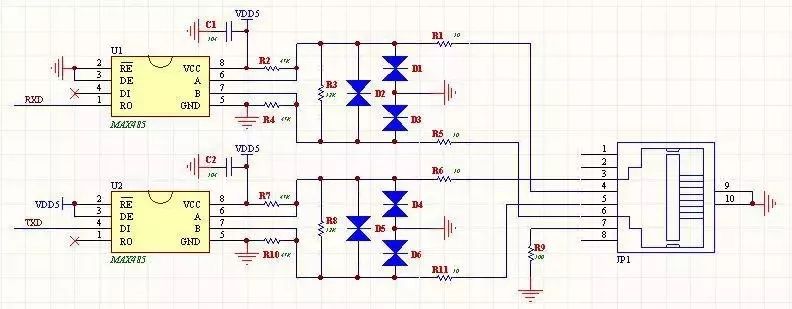 9、全双工RS485电路(带保护功能)
