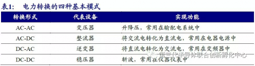 模拟 IC 中的电源管理 IC 与分立器件中的功率器件功能相似,二者经常集成在一颗芯片中,因此功率半导体包括功率 IC 和功率器件。功率半导体的具体用途 是变频、变相、变压、逆变、整流、增幅、开关等,相关产品具有节能的作用,被广泛应用于汽车、通信、消费电子和工业领域。在汽车中,汽车蓄电池的输入电压 在 12V-36V,而民用电电压为 220V,将民用电电压转换至输入电压的过程叫做变 压。蓄电池的输入电流一般是直流电,将交流电转换为直流电的过程叫做整流。汽车运行时,蓄电池持续输出直流电,而汽车的各个模块需要使用交流电,交流电转 换为直流电的过程叫做逆变。汽车蓄电池输出的电压很低,无法满足各个模块的需 求,将低电压转换成高电压的过程叫做增幅。电动汽车的马达使用的电流是三相电。首先,蓄电池输出的直流电经过逆变后成为单向交流电,将单向交流电变为三相电 的过程叫做变相。