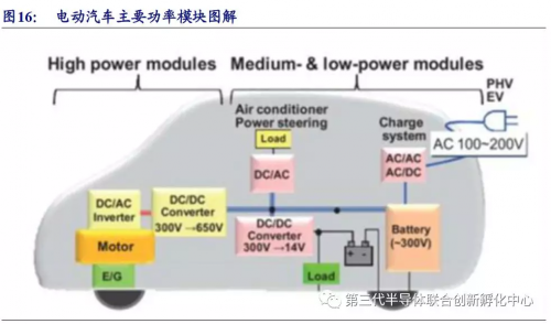 单辆汽车的功率转换系统主要有:( 1)车载充电机(chargeronboard),(2)DC/AC系统,给汽车空调系统、车灯系统供电,(3)DC/DC 转换器(300v 到 14v 的转换), 给车载小功率电子设备供电,(4)DC/DC converter(300v转换为 650v),(5)DC/AC 逆变器,给汽车马达电机供电。(6)汽车发电机。