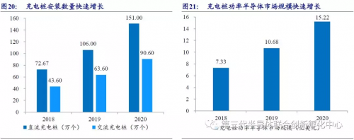 与新能源汽车相配套的充电桩对功率半导体需求也很大,新能源汽车充电桩分 为直流 IGBT充电桩和交流 MOSFET 充电桩,直流充电桩的优点在于充电速度快, 缺点是价格高昂。直流充电桩的成本约 4500 美元,交流充电桩的成本约 900 美元, 其中功率半导体占总成本的 20%左右。目前直流充电桩按 3:1 配臵,交流充电桩按 5:1 配臵,据此我们测算 2020 年直流充电桩需求为 151 万个,交流充电桩需求为 90.6 万个,2020 年全球充电桩市场对功率半导体的需求为 15.22 亿美元。