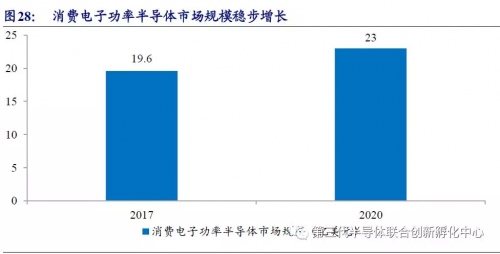 全球消费电子功率半导体市场规模稳步增长。受益于 Type-C 接口普及以及电子产品升级换代,消费电子对功率半导体需求稳步增加。根据中商产业研究院数据, 2017 年全球消费电子功率半导体的市场规模为 19.6 亿美元,预计到 2020 年市场规 模将达到 23 亿美元,复合增长率为 5.48%。