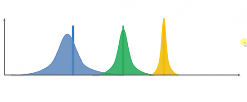 当这个游戏进行到很多步骤之后,这些分布都会变得非常窄,尤其是黄色的基本会和实际期望吻合.
