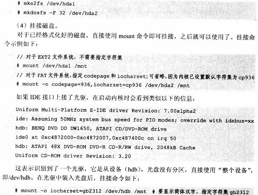 设备文件/dev/hda、/dev/hdb表示整个磁盘,设备文件/dev/hda1、/dev/hda2、/dev/hdb1、/dev/hdb2等表示磁盘的分区。初始化硬盘时,驱动程序会自动识别它的分区。