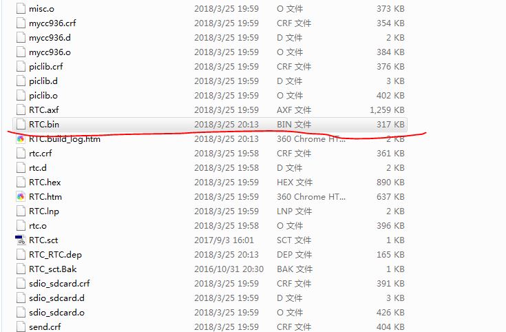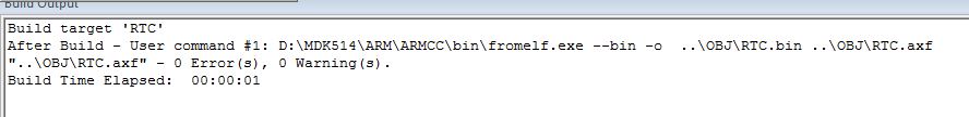 --bin -o ..OBJRTC.bin后面要再打一次空格,输出的bin文件在OBJ文件夹里面,文件名为RTC和你的工程名字一样。