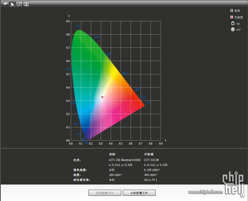 通过第三方DisplayCAL对490个色块进行验证后,校色后dE2000色差均值只有1.03但是白点严重偏离,设定6500K的色温实际色温居然只有5600K,这也是很多蜘蛛5的用户抱怨说校色后屏幕变黄的根本原因所在。