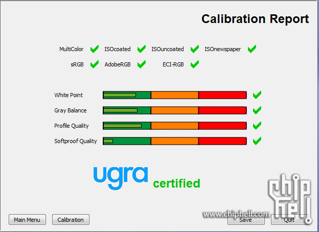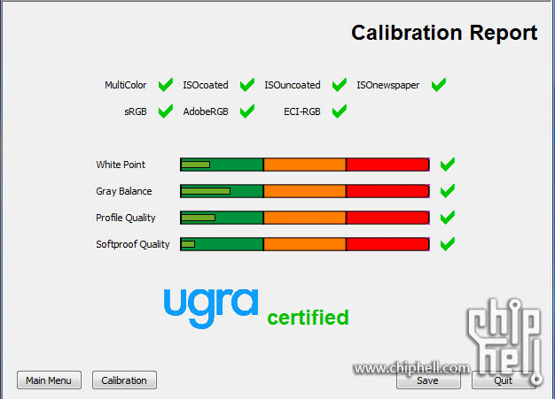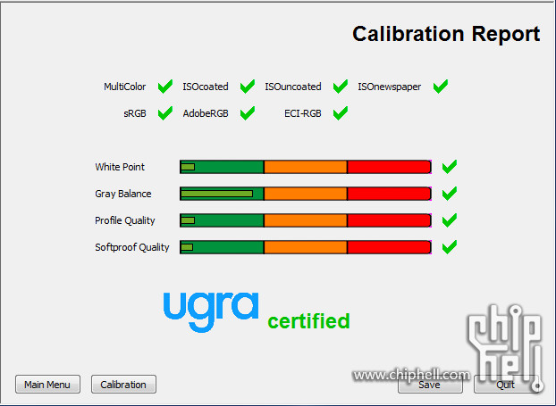 通过第三方DisplayCAL对490个色块进行验证后,校色后dE2000色差均值达到了0.58,且以全绿的成绩顺利通过瑞士ugra认证。