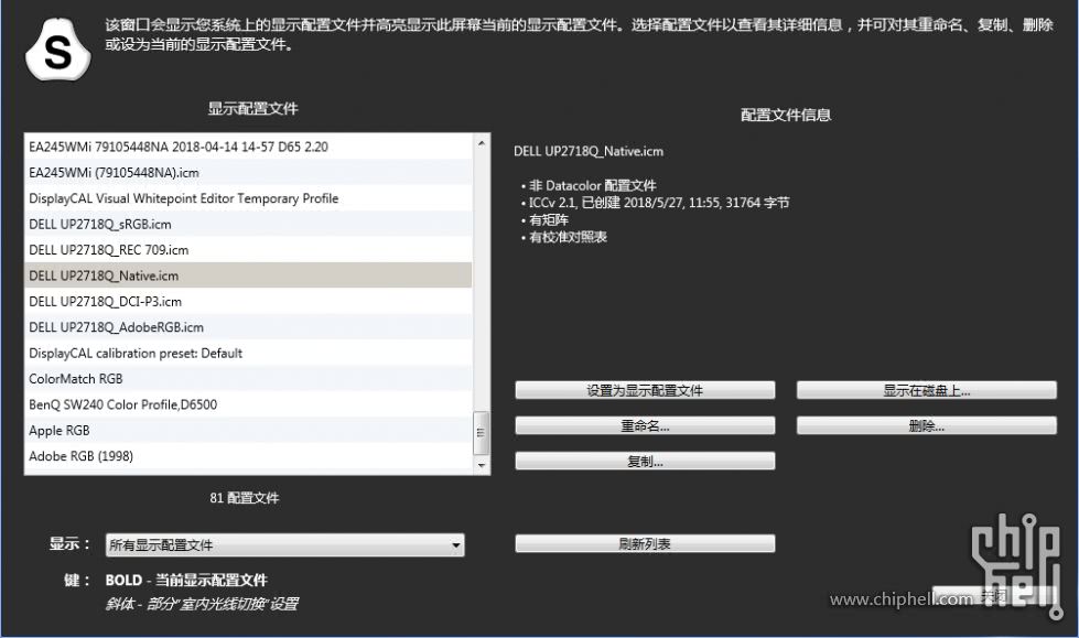 第二个功能就是色彩配置文件功能。通过这个功能可以实时管理显示设备的ICC文件并且使其实时加载在显卡LUT中,无需重新启动系统。