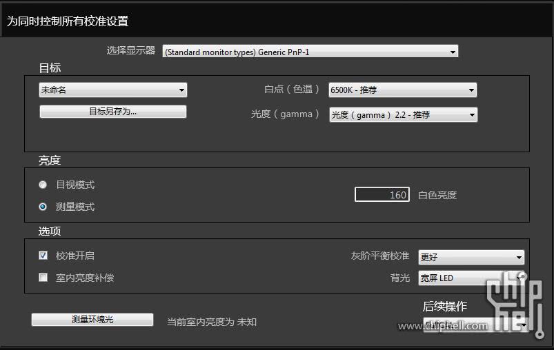 分色亮度计此处一定要正确选择显示器的背光类型确定背光特性,否则校色出来的结果是存在问题的。官方软件在此根据光谱特性选择RGB LED背光。