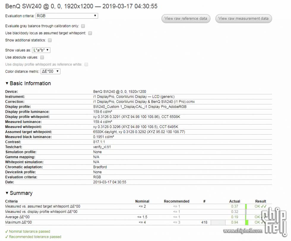 色差dE2000均值控制在了0.19,白点控制也极佳。