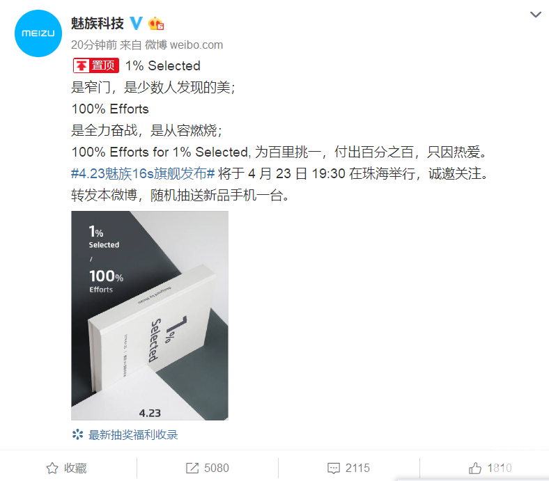 经过网友的日日催更,魅族科技官方微博终于在今天宣布魅族16s 将于4 月 23 日 19:30 在珠海举办魅族 16s 旗舰手机发布会。