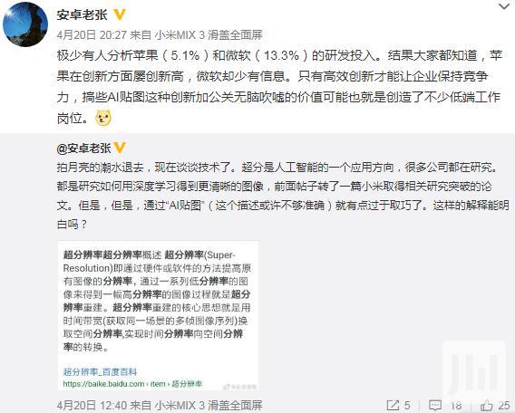 这位高管便是小米移动软件研发总监@安卓老张,他称: