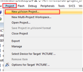 二、打开keil软件,点击 Keil 的菜单: Project –>New Uvision Project,保存时将目录定位到自己创建的文件下:
