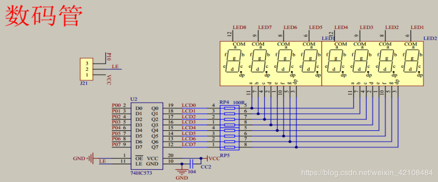 八位数码管及74HC573原理图