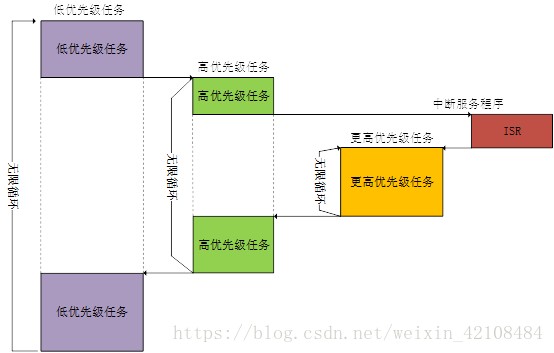 UCOS的内核就是可剥夺型的,可剥夺内核顾名思义就是可以剥夺其他任务的CPU使用权,它总是运行就绪任务中的优先级最高的那个任务。