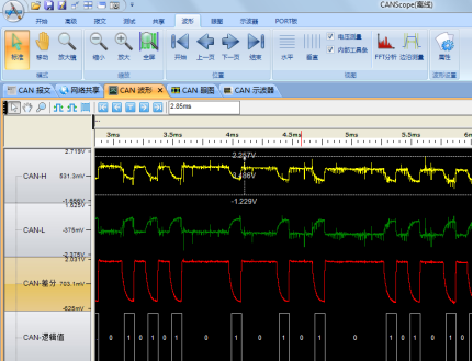负载率过高,总线节点多,造成总线网线的分布电容很大,体现在下降沿非常缓,如图4所示,显性电平回到隐性电平需要的放电时间加大。对信号来说就是会缩短隐性电平时间,容易导致位错误。
