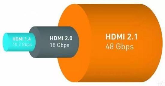 为了迎接未来超清时代音视频传输的更高要求,HDMI组织发布了最新的HDMI 2.1技术标准。与HDMI 2.0相比,2.1的带宽从18 Gbps猛增至48 Gbps,可以完美支持4K/120Hz、8K/60Hz、甚至是10K等分辨率和刷新率的视频,而且还支持动态HDR。利用一根HDMI 2.1传输线,就能完美实现8K内容的传输,可以说,如同4K标配HDMI 2.0一样,HDMI 2.1将会是连接8K时代必需的一座大桥。