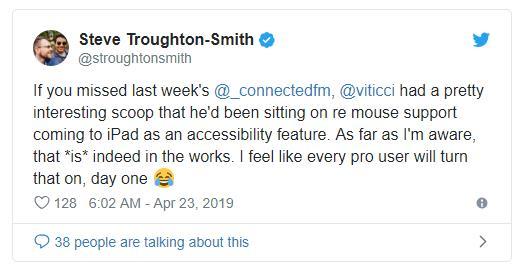 与此同时,时常爆料iOS功能的开发者斯蒂夫‧史密斯也响应了该名编辑的说法。他表示,据他所知,苹果让 iOS 支持鼠标的功能“确实正在开发中”。