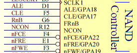 由上图可知,电阻NR5未焊接,即NCON与GND是断路,所以:NCON=1,GPG13=1,GPG14=1,GPG15=0。即,先进NAND Flash,每个页面2K字节,需要5个地址周期,8位宽度。