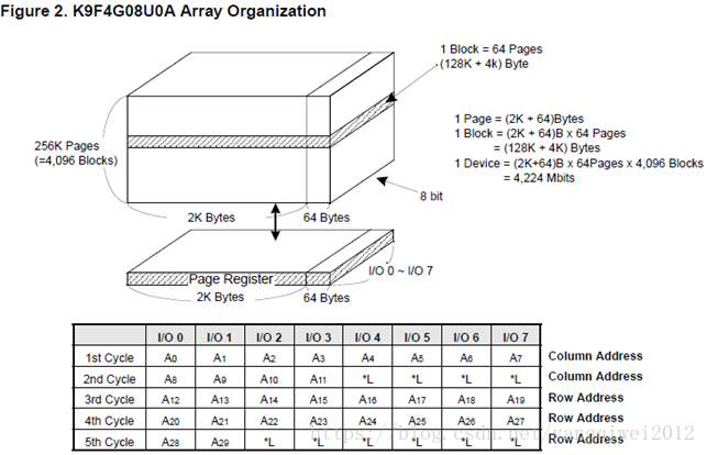由上图可知K9F4G08结构: