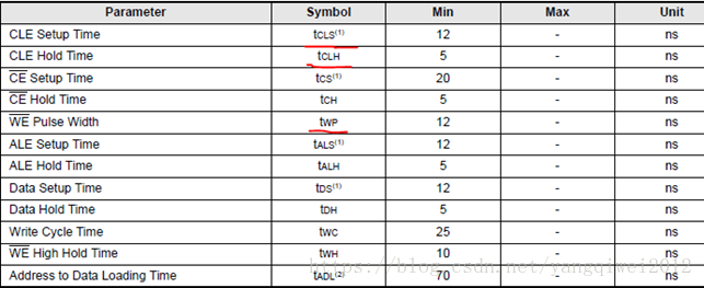 NAND FLASH的datasheet的时序关系: