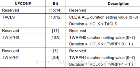 对于NFCONF,需要了解各参数对应关系。 S3C2440手册中如下图: