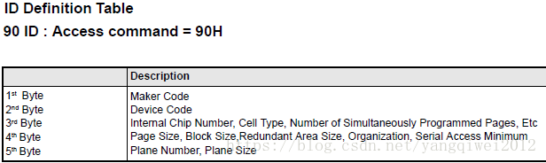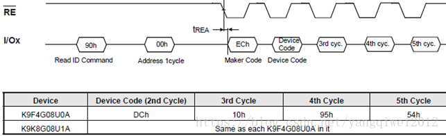 读器件ID的命令是90H,接下来5个周期读到产品信息码:
