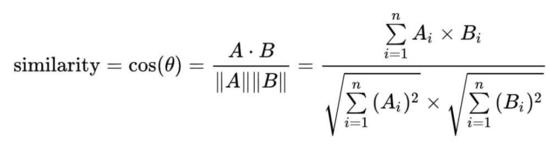给定两个属性向量, A 和B,其余弦相似性θ由点积和向量长度给出,如下所示: