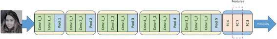 目前最流行和广泛应用于人脸识别的是VGGF模型,由Oxford Visual Geometry Group开发。该模型在一个超过2.6 K个体的2.6M面部图像的巨大数据集上进行训练。