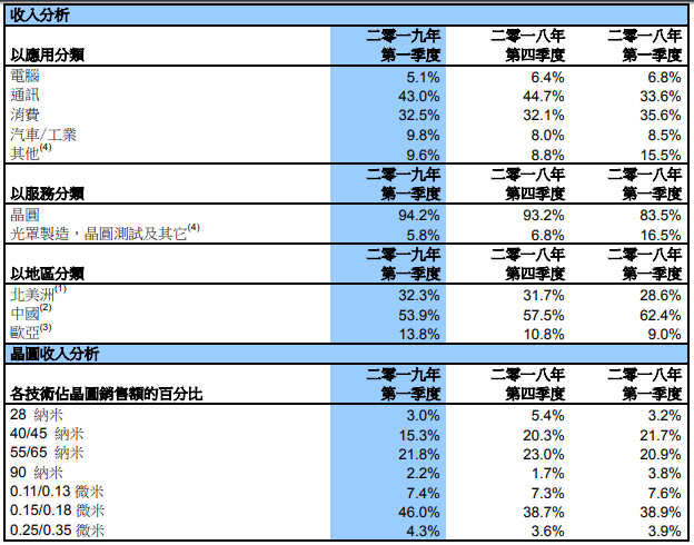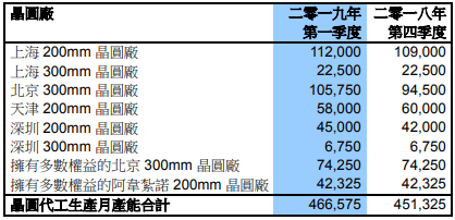 中芯国际表示,月产能由2018年第四季的 45 万 1 仟 3 佰 25 片 8 吋等值晶圆增加至2019年第一季的 46 万6 仟 5 佰 75 片 8 吋等值晶圆,主要由于2019年第一季北京 300mm 晶圆厂产能扩充所致。