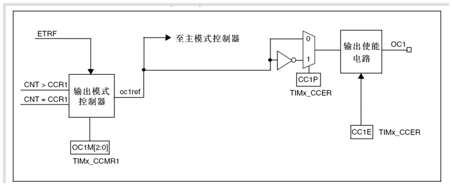 CCMR1: OC1M[2:0]位: 对于PWM方式下,用于设置PWM模式1【110】或者PWM模式2【111】