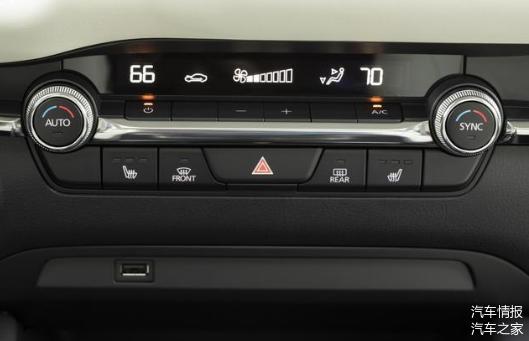 那么,不使用触控屏,用什么呢?对此,马自达是这样回应的,其希望用更简单的操控方式,如通过旋转式的按钮来操控对媒体播放等应用的控制,左右旋转切歌、按一下静音、长按关闭屏幕等,操作起来既简单又方便;将屏幕放在更高的位置,让驾驶员在使用的时候目光尽可能少的远离路面,同时严格控制屏幕的亮度,让驾驶员观察的时候更好地适应;而空调部分,也使用单独的实体按键和旋钮,使用起来非常直接,也非常方便,误操作率极低。