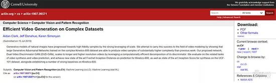 目前,DVD-GAN的研究成果已于美国时间2019年7月15日发表在arxiv上,名为《在复杂数据集上的高效视频生成(Efficient Video Generation on Complex Datasets)》。