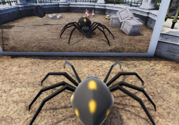 这两种动物的体验对参与者来说会有点疲惫,因为人们不得不跪在瑜伽垫上,而且各部位会出现一些对接不连贯的问题,比如变身蜘蛛者回头,可能会看到蜘蛛在他们身后,而且他们不能把身体和蜘蛛的每只脚对应;变身老虎的头部位置也产生了一些视觉扭曲: