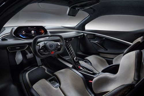相比路特斯品牌当前在售的产品,Evija的内饰更具科技感,近似矩形的方向盘内,提供了可在ECO、City、Tour、Sport 以及Track五种模式中切换的旋钮,除了全液晶仪表盘外,车内并未装备多余的显示屏,“保持纯粹、聚焦驾驶”的设计风格足够“路特斯”。