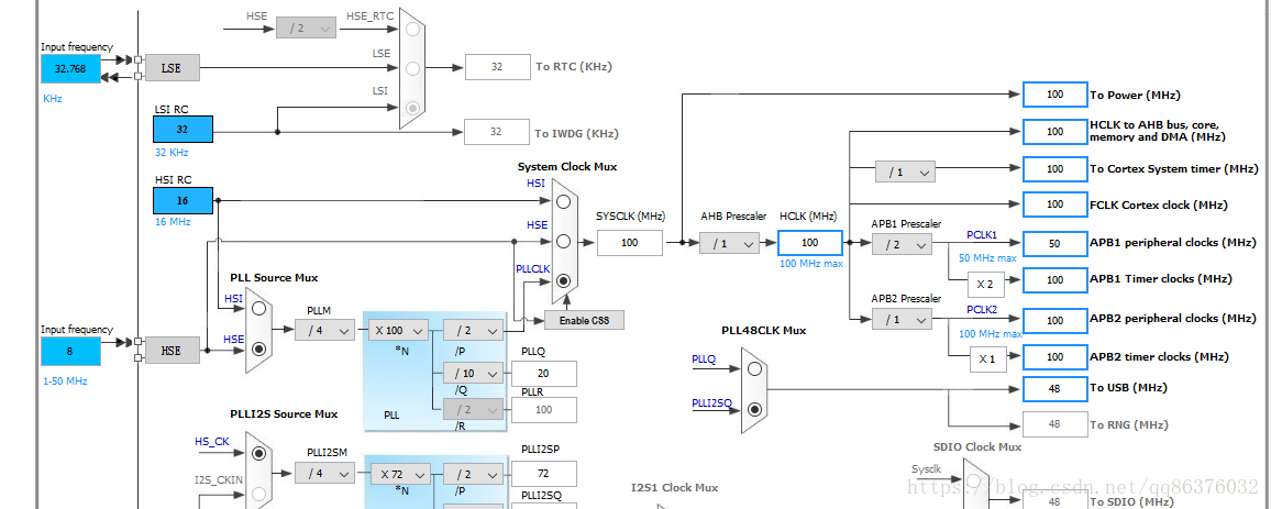 3.其他的串口设置,这里不做说明。时钟树设置如下: