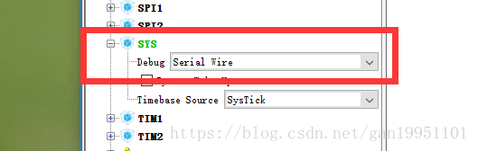 造成SW失效的原因是我在配置STM32CubeMX时没有配置SW,如图所示,找到SYS选项里的Debug,选择你的下载器。