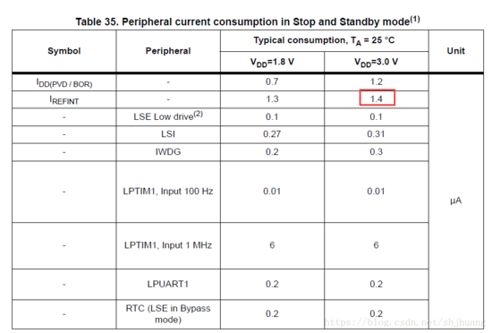 看了文档,多于的1.4uA可能来源于IVREFINT,如下图所示:
