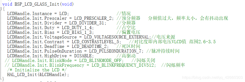 因为是做嵌入式,出现问题不一定是软件的原因也可能是硬件问题(我开始一直偏向软件原因)。但一般都先分析软件方面,LCD的显示方式就不再赘述,首先分析就是LCD配置方面。配置函数如下: