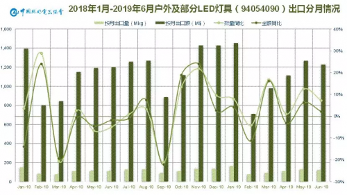 从出口数据上看,中美贸易摩擦互征关税对2019年上半年我国照明产品对美出口的负面影响并不如预想中的那么大。