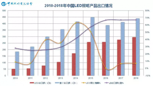 总体上看,LED照明产品近年来随着产业链各端技术日新月异的进步,性价比进一步提升,已向普通照明各个领域逐渐普及,也带动了相关产品出口的增长,但市场需求相对低迷,增长基数逐步增大,LED长寿命导致的市场峰值变换等客观原因使然,LED照明产品增速收窄也是大势所趋。LED占整个出口份额逐年上升,体现了其对传统照明产品的逐步替代。