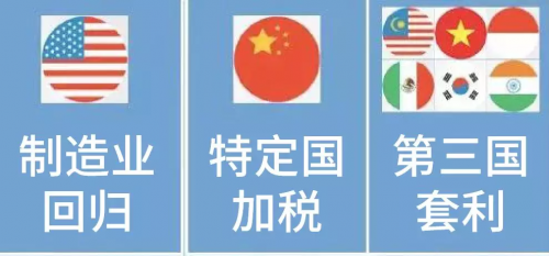 美国期望照明等工业制造业回归,却仅针对特定国诸如中国加税而非普适性加税。在这个形势下,越南、印度、马来西亚、墨西哥等具备一定照明产品制造能力的低税率国家会通过转口贸易或中方投资套利。