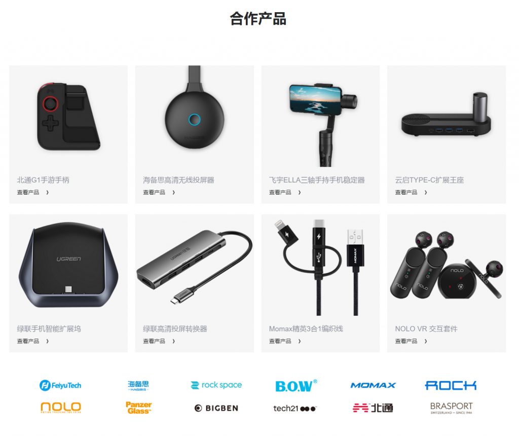 官网页面透露,目前华为DFH合作产品和品牌包括:北通、海备思、飞宇、ROCK、rockspace、绿联、MOMAX、NOLO、BOW、Panzer Glass、BIGBEN、tech21、BRASPORT等。