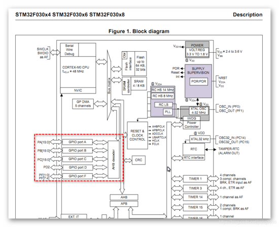 通过查看数据手册,我们可以发现,PA、PB等是挂载在AHB总线上的。
