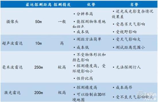 ▲各种传感器优劣势比较